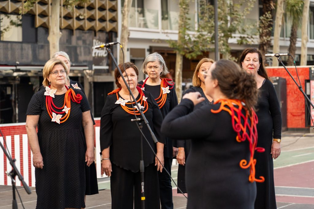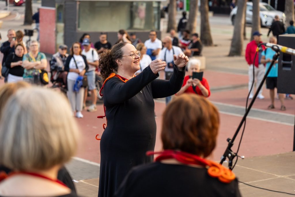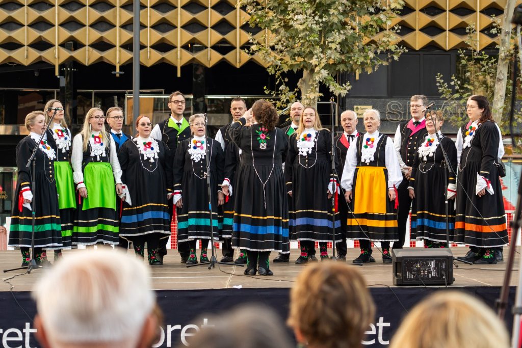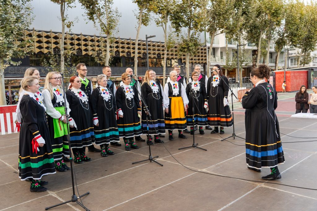 The highlight of the evening was the performance of the folk dance group KLASESBIEDRI from Marupe, Latvia. Their lively and energetic national dances instantly captivated the audience, filling the square with rhythm, color, and joy. The dancers performed twice during the concert, showcasing the true essence of Latvian dance tradition — dynamic, playful, and full of national pride. Their performance became one of the most memorable moments of the entire festival.Alongside the dancers, the audience had the pleasure of enjoying the sounds of traditional Finnish choral music. Two wonderful choirs from Finland — Naiskuoro Ultima Thule (Female Choir Ultima Thule) from Oulu and Kaustisen Hääkuoro — graced the stage with their heartfelt singing. Finnish folk songs, known for their deep connection with nature, lyrical melodies, and emotional sincerity, transported listeners to the northern landscapes of lakes and forests, where every sound tells a story passed down through generations.
